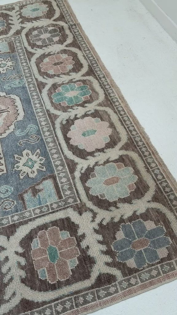 Due to the vintage nature of our rugs, we recommend either spot cleaning or performing a whole-rug cleaning when necessary. Please note that these are vintage rugs and sometimes may arrive with an odor from washing the natural wool that will disipate over time.